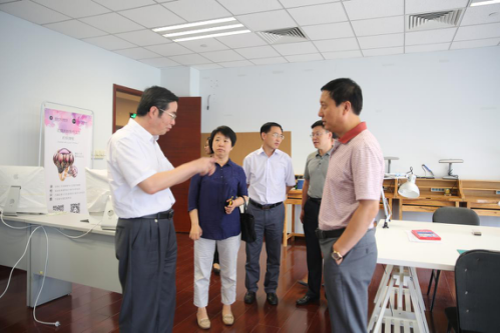 寶石中心葉志斌主任(左一)、梁振杰副主任(右二)、柯捷副主任(左二)、畢立君同志(中)在國(guó)檢珠寶培訓(xùn)中心楊立信主任(右一)的陪同下參觀設(shè)計(jì)手繪教室