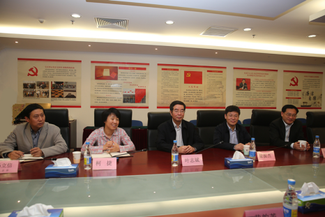 國(guó)土資源部珠寶玉石首飾管理中心(國(guó)家珠寶玉石質(zhì)量監(jiān)督檢驗(yàn)中心)主任葉志斌(中),副主任梁振杰(右二)、柯捷(左二),畢立君同志(右一),國(guó)檢珠寶培訓(xùn)中心主任楊立信(左一)聽取了上海寶玉石交易中心的工作情況介紹