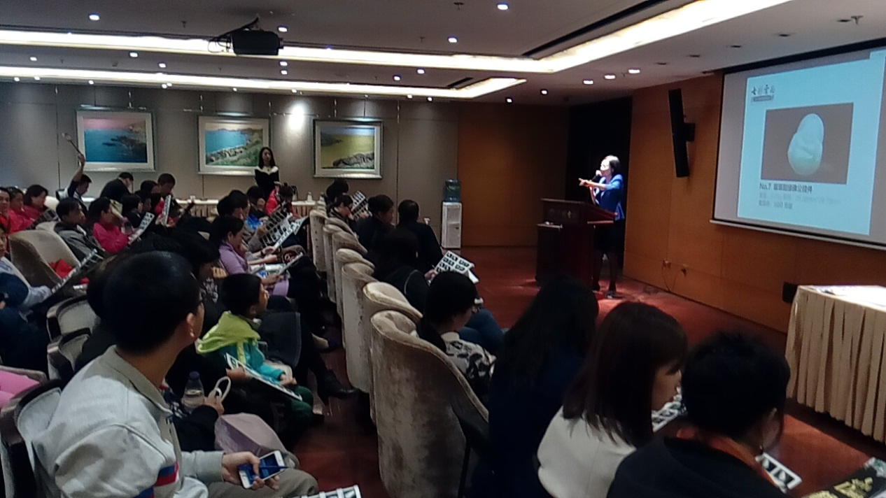 10月22日下午,在北京市西城區(qū)月壇北街26號(hào)七彩云南旗艦店,國(guó)家珠寶玉石質(zhì)量監(jiān)督檢驗(yàn)中心技術(shù)支持的“北京惠民文化消費(fèi)季”指定玉器專場(chǎng)——七彩云南2016翡翠競(jìng)買會(huì)正式開場(chǎng),所有1000元以上拍品已經(jīng)都配備了NGTC證書。NGTC北京實(shí)驗(yàn)室馮曉燕高級(jí)工程師,現(xiàn)場(chǎng)為參加競(jìng)買的消費(fèi)者提供咨詢與鑒定?,F(xiàn)場(chǎng)驚喜不斷,掃二維碼還能搶紅包。百余名珠寶愛好者參與了秋季翡翠競(jìng)拍活動(dòng)。
