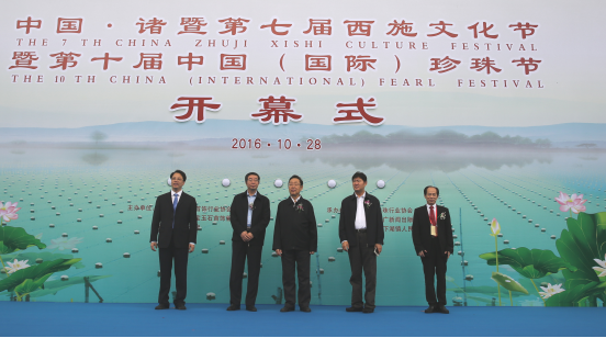 2016年10月28日上午,由國土資源部珠寶玉石首飾管理中心、中國珠寶玉石首飾行業(yè)協(xié)會(huì)和浙江省諸暨市人民政府共同主辦,中國珠寶玉石首飾行業(yè)協(xié)會(huì)珍珠分會(huì)、浙江省珍珠行業(yè)協(xié)會(huì)、浙江諸暨珍珠產(chǎn)業(yè)園區(qū)管理委員會(huì)和諸暨市山下湖鎮(zhèn)人民政府聯(lián)合承辦的“中國·諸暨第十屆中國(國際)珍珠節(jié)”在諸暨市山下湖鎮(zhèn)華東國際珠寶城南廣場隆重開幕。