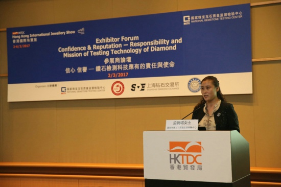 國家珠寶玉石質(zhì)量監(jiān)督檢驗(yàn)中心(NGTC)宣傳推廣部主任孟曉珺女士介紹NGTC2017珠寶文化盛事