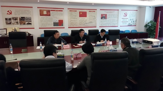 黨委書(shū)記、主任葉志斌同志(中)主持會(huì)議,畢立君同志(右一)和孫鳳民同志(左一)以及中心各部門主要負(fù)責(zé)人參加了會(huì)議。