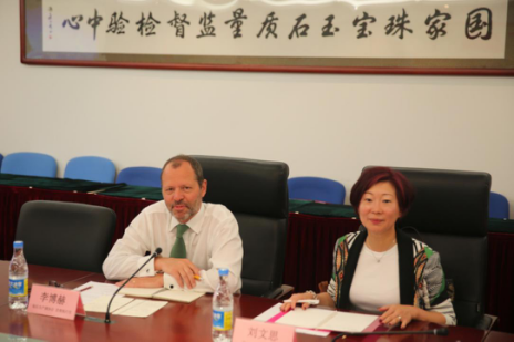 2017年6月28日下午,國(guó)土資源部珠寶玉石首飾管理中心(國(guó)家珠寶玉石質(zhì)量監(jiān)督檢驗(yàn)中心NGTC)主任葉志斌,副主任柯捷以及畢立君、孫鳳民等中心領(lǐng)導(dǎo)共同會(huì)見(jiàn)了鉆石生產(chǎn)商協(xié)會(huì)(Diamond Producers Association,簡(jiǎn)稱(chēng)DPA)首席執(zhí)行官李博赫J(rèn)ean-Marc Lieberherr、中國(guó)區(qū)項(xiàng)目總監(jiān)劉文思一行。