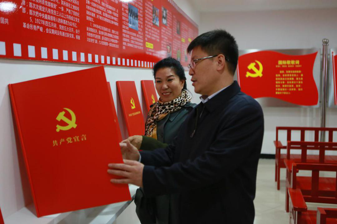 梁振杰副主任在遼寧中金歐亞珠寶集團董事長曲靜的陪同下參觀遼寧中金歐亞集團黨建陣地