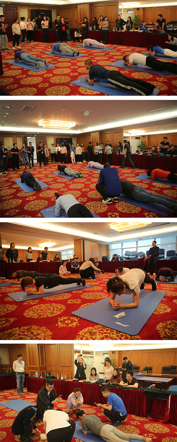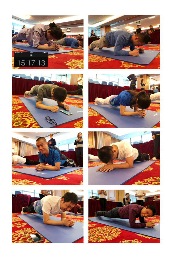 平板支撐中,大家咬牙堅(jiān)持、挑戰(zhàn)極限。