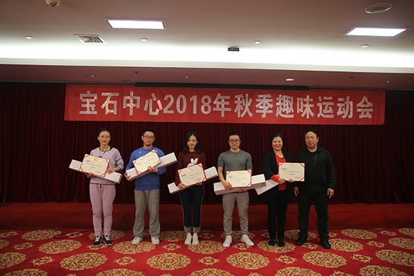 12日下午,寶石中心舉辦了運(yùn)動(dòng)會(huì)頒獎(jiǎng)儀式,由寶石中心領(lǐng)導(dǎo)分別為比賽獲勝者頒獎(jiǎng)。寶石中心黨委書記、主任葉志斌在頒獎(jiǎng)儀式上熱烈祝賀寶石中心首屆運(yùn)動(dòng)會(huì)圓滿完成,熱情地稱贊所有參與組織、協(xié)調(diào)、比賽隊(duì)員及助陣?yán)怖碴?duì)員們所做出的努力和辛苦,并希望全體干部員工把健康生活、快樂工作的理念融入到日常工作生活的點(diǎn)點(diǎn)滴滴中,保持和發(fā)揚(yáng)積極進(jìn)取、敢打敢拼、拼搏向上的精神風(fēng)貌,為寶石中心發(fā)展發(fā)揮各自應(yīng)有的作用,增添新的亮麗色彩。