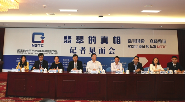 5月13日,國(guó)家珠寶玉石質(zhì)量監(jiān)督檢驗(yàn)中心(NGTC)、中國(guó)珠寶玉石首飾行業(yè)協(xié)會(huì)珠寶首飾鑒定評(píng)估專業(yè)委員會(huì)、中國(guó)質(zhì)量檢驗(yàn)協(xié)會(huì)珠寶玉石飾品專業(yè)委員會(huì)聯(lián)合召開“翡翠的真相”記者見面會(huì)。見面會(huì)現(xiàn)場(chǎng)展出10套不同種類和成色的翡翠樣品,以及與翡翠相關(guān)的各項(xiàng)國(guó)家標(biāo)準(zhǔn)。珠寶玉石鑒定專家現(xiàn)場(chǎng)介紹翡翠國(guó)家標(biāo)準(zhǔn),講解翡翠鑒定檢測(cè)方法,與會(huì)來賓結(jié)合實(shí)物展品,共同還原翡翠本來面目、曝光翡翠消費(fèi)陷阱。