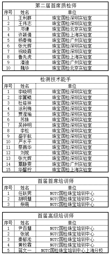 2021年珠寶國(guó)檢以專業(yè)化、市場(chǎng)化為導(dǎo)向,聚焦人才發(fā)展振興戰(zhàn)略,更大力度、更高質(zhì)量地實(shí)施人才培養(yǎng)專項(xiàng)工作,通過(guò)選拔、考核相結(jié)合的方式,授予10人“第二屆首席質(zhì)檢師”稱號(hào)、15人“檢測(cè)技術(shù)能手”稱號(hào)、3人“首屆首席培訓(xùn)師”稱號(hào)、5人“首屆高級(jí)培訓(xùn)師”稱號(hào)。他們專業(yè)技術(shù)水平突出,理論基礎(chǔ)扎實(shí),實(shí)踐經(jīng)驗(yàn)豐富,在專業(yè)領(lǐng)域具有攻堅(jiān)克難的能力,為加速培養(yǎng)適應(yīng)珠寶國(guó)檢發(fā)展戰(zhàn)略需要的國(guó)內(nèi)頂尖、國(guó)際一流的高層次專業(yè)人才隊(duì)伍提供了堅(jiān)實(shí)的基礎(chǔ)和有力的支撐。