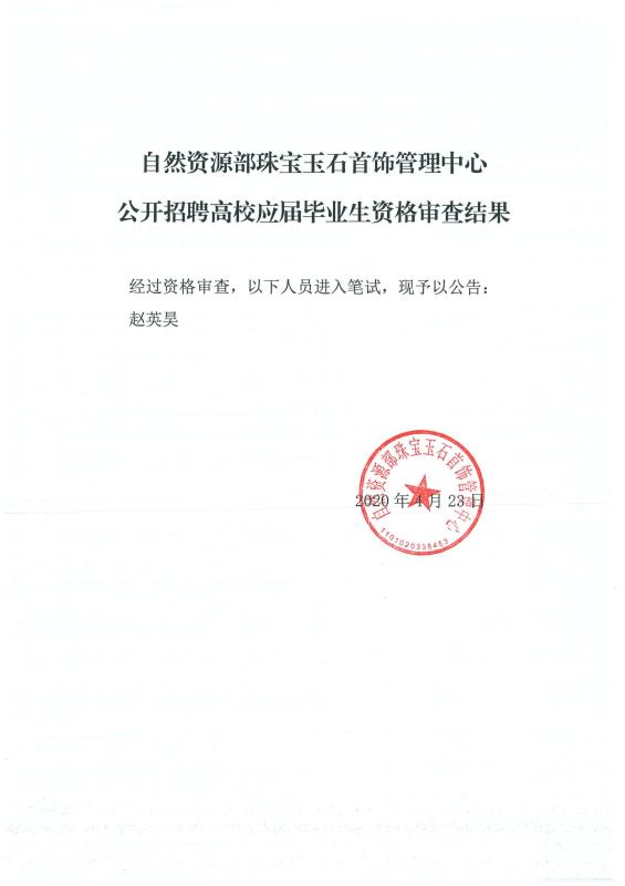 自然資源部珠寶玉石首飾管理中心公開(kāi)招聘高校應(yīng)屆畢業(yè)生資格審查結(jié)果