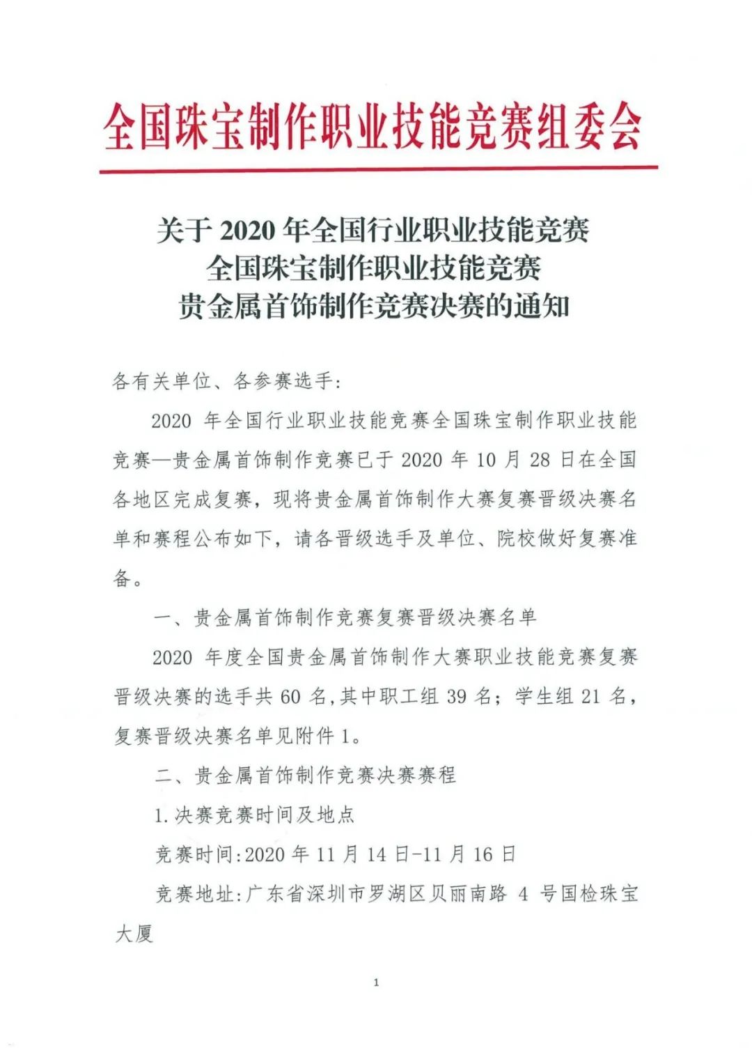 【決賽通知】2020年全國(guó)行業(yè)職業(yè)技能競(jìng)賽——全國(guó)珠寶制作職業(yè)技能競(jìng)賽—貴金屬首飾制作競(jìng)賽決賽通知發(fā)布!