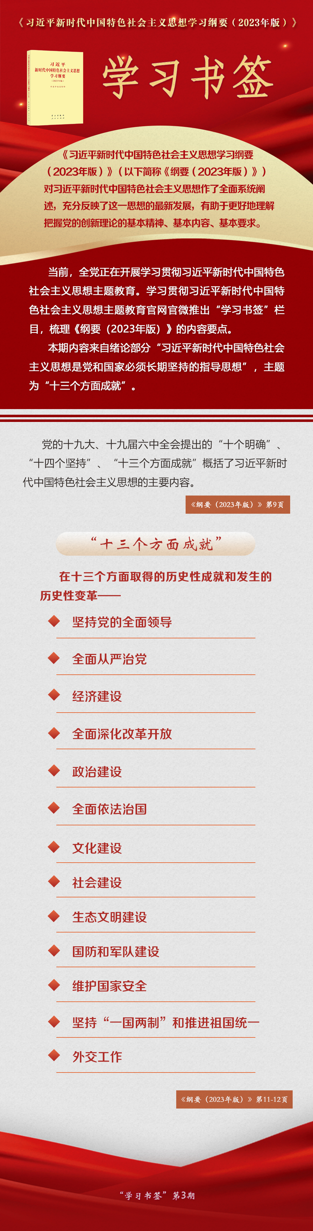 《習近平新時代中國特色社會主義思想學習綱要(2023年版)》 學習書簽丨“十三個方面成就”