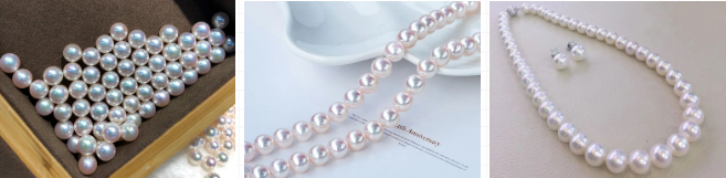 “珈白麗珍珠”平均珠徑為7-8mm,顆粒較小,正圓率較高。