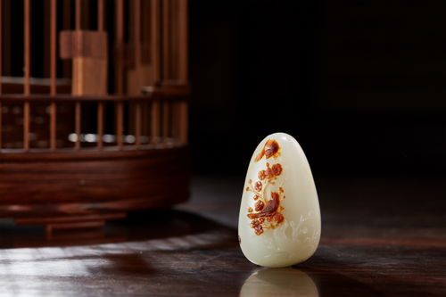 一件充滿生命力的和田玉俏雕藝術(shù)作品,應既有書法的筆意與繪畫的風采,又有妙不可言的詩情與動感曼妙的“音符”。其刀味、玉韻、線條都需準確精妙,不動聲色地將情感和意境流露,于方寸之間,融萬千氣象。