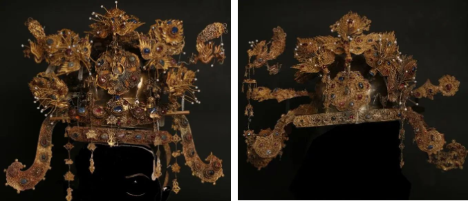 貴州省博物館館藏兩頂明朝的金龍鳳冠,這兩頂冠飾由中國文物遺產(chǎn)研究院和貴州省博物館聯(lián)合進(jìn)行修復(fù),我也參與其中。