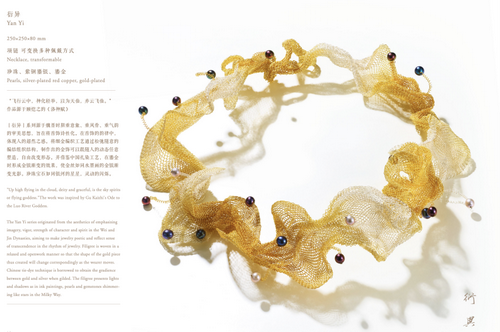 我們都在談如何讓傳統(tǒng)活化、如何把傳統(tǒng)帶到今天的生活中來,而這件鳳冠在設(shè)計(jì)上給了我很大的啟發(fā),如何讓珍珠動起來引起了我的思考。珍珠的顫動感本身就是跟中國傳統(tǒng)文化中的“天人合一”、人與自然的關(guān)系相得益彰的,人的靈性與珍珠的光芒形成了很好的互動,于是我在作品里就開始采用這樣的工藝方式。