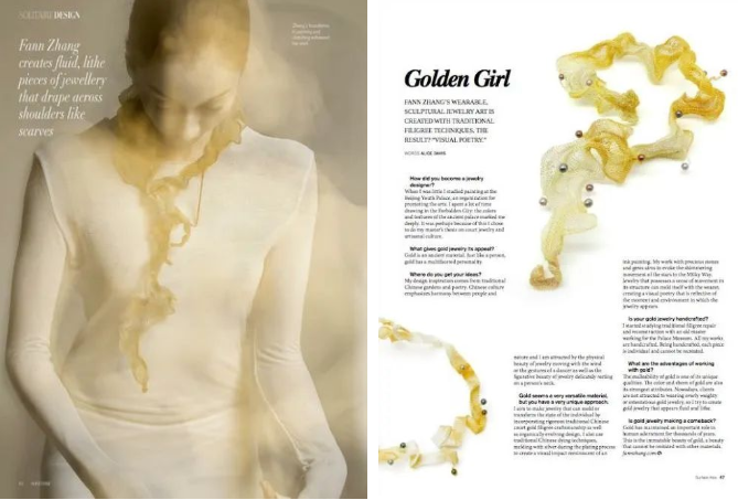 國外很多媒體對這個(gè)系列的作品特別感興趣,大家也在探討什么是新時(shí)代的奢侈品,其實(shí)它不僅僅是材料的名貴,還要有地域的文化特征,以及把各地域的傳統(tǒng)文明轉(zhuǎn)化成現(xiàn)代文明的設(shè)計(jì)手法。在整個(gè)系列作品的制作過程中,我也考慮了珍珠和人之間的搭配關(guān)系。因?yàn)檎渲楸旧聿⒉幌裼行毷敲磽屟?,它很溫潤、很柔和,所以其?shí)它自己本身有很好的保護(hù)屬性,能夠幫助形成非常好的人與自然之間的鏈接關(guān)系。