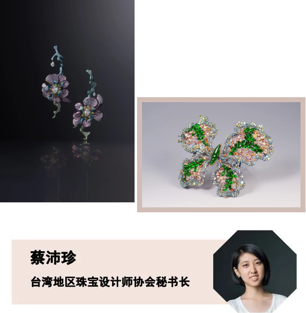蔡沛珍,中國臺灣地區(qū)珠寶設計師協(xié)會秘書長,2014年于英國伯明翰城市大學取得珠寶設計碩士學位。其作品多次獲得各大國際首飾設計比賽肯定,也曾在荷蘭、德國、日本等國展出。蔡沛珍擅長運用中國傳統(tǒng)元素進行設計,希望以現(xiàn)代、簡潔的方式呈現(xiàn)中華文化的多姿多彩。