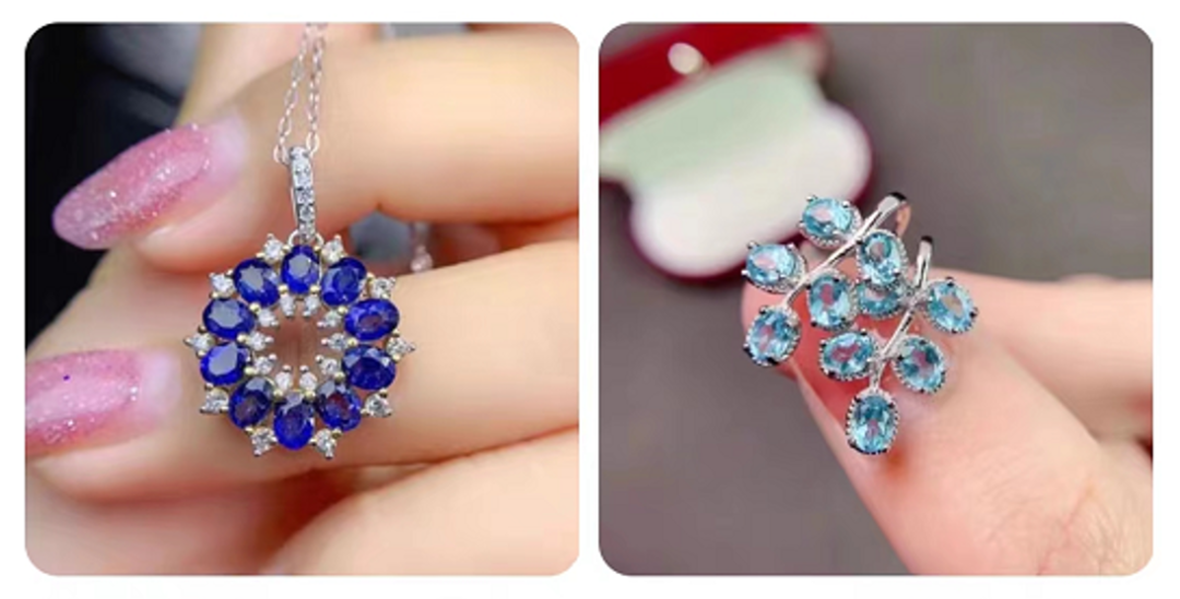 圖30 淘寶銀鑲嵌天然寶石產(chǎn)品:藍寶石吊墜s925銀精工鑲嵌(左),磷灰石耳環(huán)s925銀精工鑲嵌
