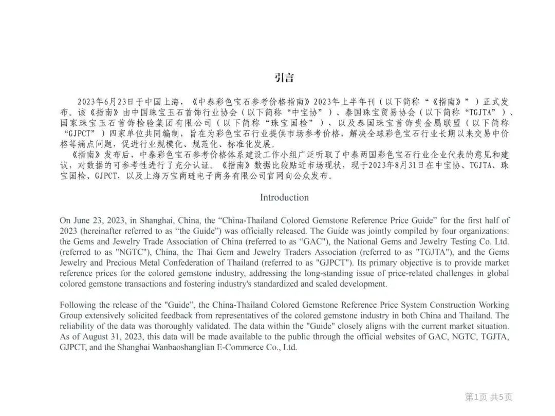 《中泰彩色寶石參考價(jià)格指南》 2023年上半年刊在中寶協(xié)、珠寶國(guó)檢等5家單位官網(wǎng)正式上線