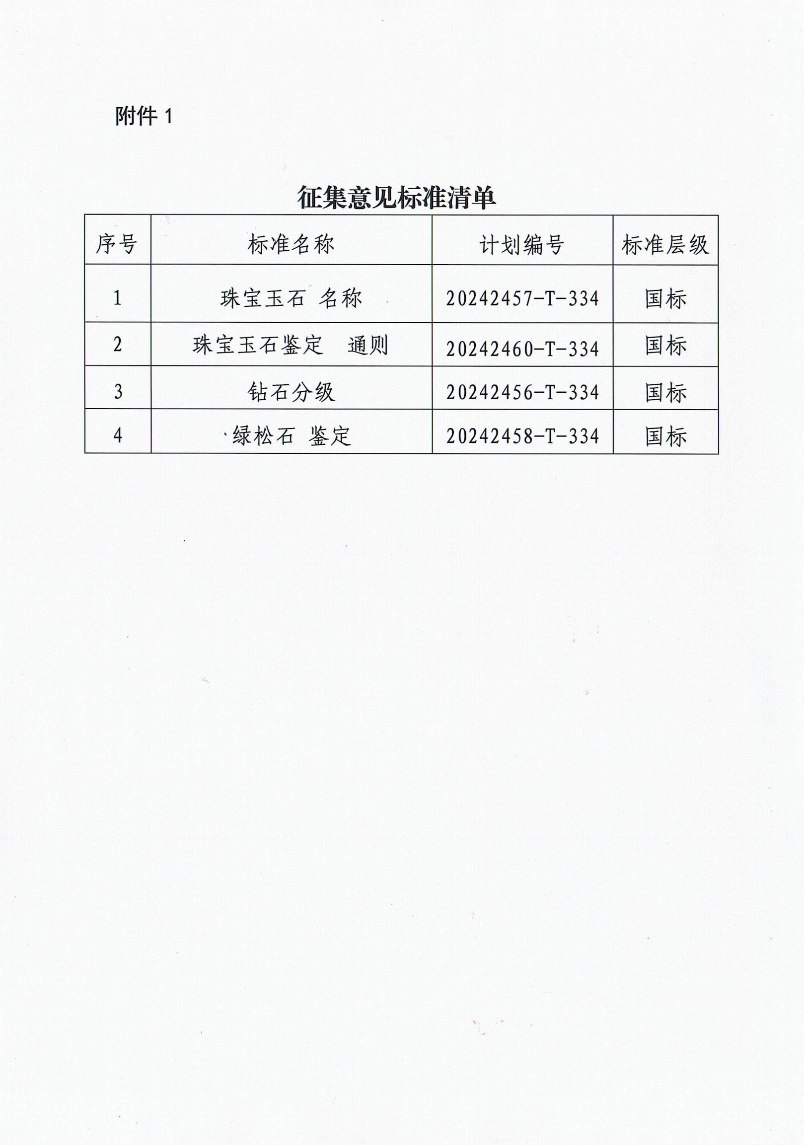 關(guān)于對《珠寶玉石 名稱》等4項標(biāo)準(zhǔn)征求意見的通知